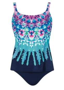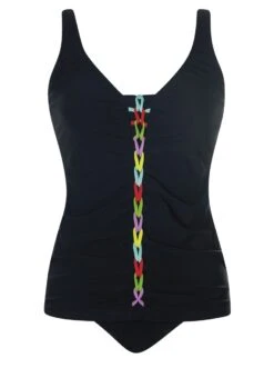 Sehr schöner, bestens tragbarer Tankini in Weiß mit schwarzen Diagonalstreifen. Mit Softstütze und verstellbaren Trägern zum Aushaken. Ein Tankini, der einfach immer passt.