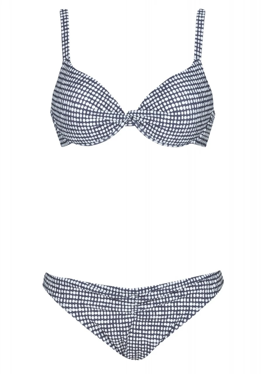Wie kleine Kieselsteine reihen sich die weißen Ovale aneinander – wahlweise auf rotem oder grauem Hintergrund. Ein traumhaft schönes Design. Bikini mit Softschalen, Formbügel und schönem Twist-Detail zwischen den Cups. Die verstellbaren Träger sind am Rücken aushakbar. Hüfthose mit schmaler Seitenhöhe.