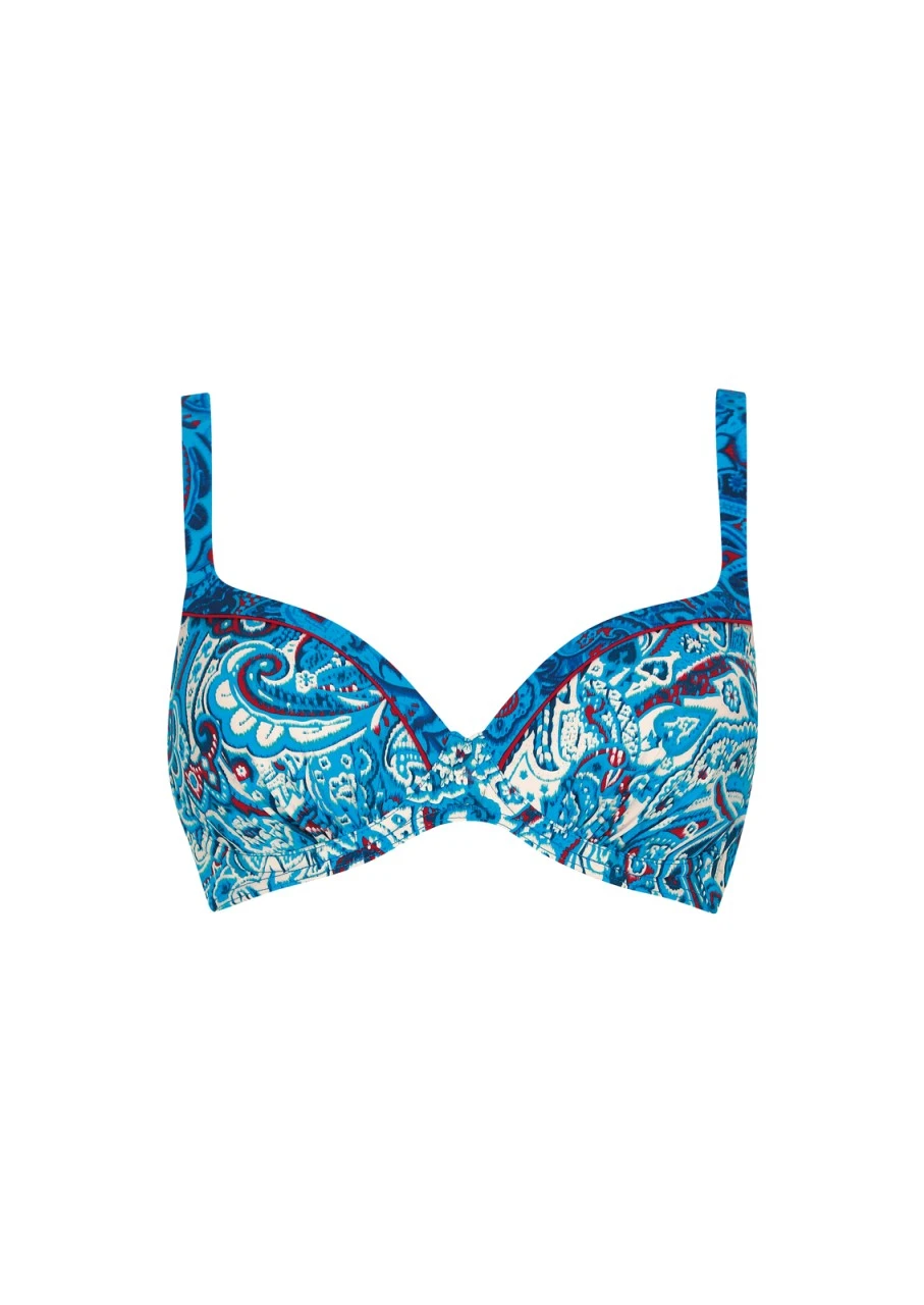 Lust auf süße Bademode? Wir empfehlen Ihnen dieses wunderschöne Paisley-Muster mit Farbmix. Eine schmale, rote Paspel trennt die beiden Stoffe – eine zauberhafte Kombination des modischen Prints auf weißem und türkisem Hintergrund. Bikini-Top mit Softschalen und Formbügel. Die Träger sind verstellbar und an der Rückseite aushakbar, somit können die Träger im Nacken gebunden werden. Nachhaltige Bademode: OLYMPIA® GOES NEXT LEVEL – das Polyamid für den Oberstoff ist zu 100 % aus recycelten Fasern.