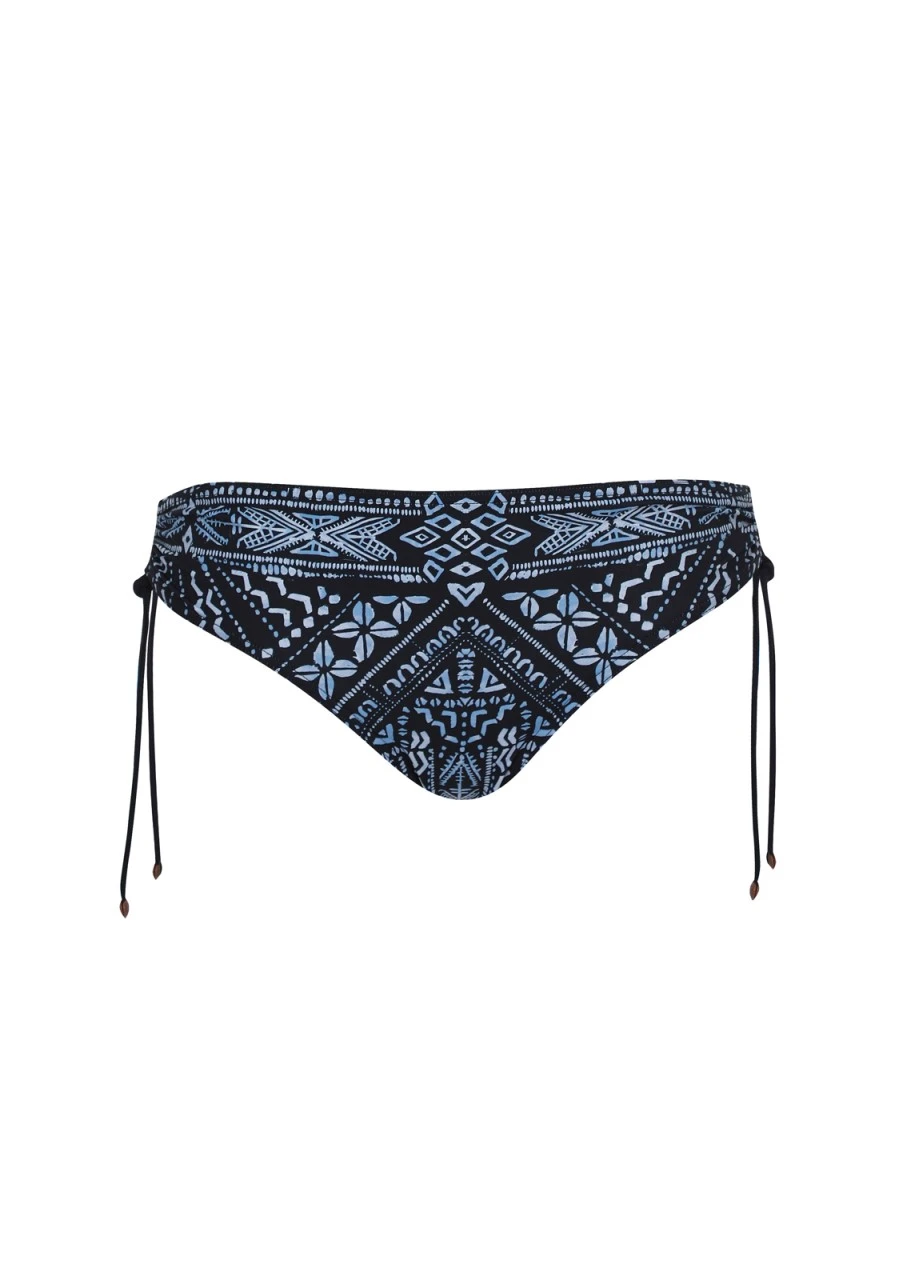 Kräftiges Nachtblau, darauf ein stylischer und zugleich lässiger Grafikprint in Hellblau. Ein trendiger Print für einen coolen Look im und am Wasser. Verstellbarer Bikini Slip – durch die Bändchen an den Seiten kann die Höhe der Bikinihose verstellt werden. Kombinieren Sie nach Herzenslust Ihren Style. Nachhaltige Bademode: OLYMPIA® GOES NEXT LEVEL – das Polyamid für den Oberstoff ist zu 100 % aus recycelten Fasern.