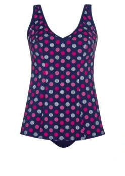 Zauberhafter Tankini in Schwarz mit Softschalen. Die Träger sind verstellbar und an der Rückseite zum Aushaken. Das Highlight ist die mittig angebrachte Flechtung in Regenbogenfarben, die dem Zweiteiler einen Frischekick verleiht. Taillienslip mit breiter Seitenhöhe.
