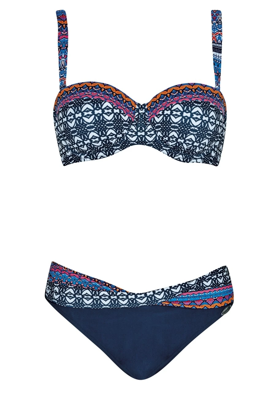 Lust auf süße Bademode? Wir empfehlen die Serie LATIN ART von SUNFLAIR®! Genialer Mix von frischen, fröhlichen Farben und Muster im Ethno Stil. Bandeau-Bikini mit Softschalen, Formbügel und verstellbaren Trägern zum Abnehmen. Slip mit Blende in Gürtel-Optik.